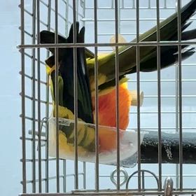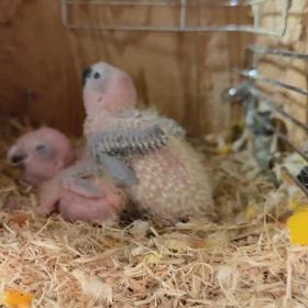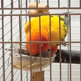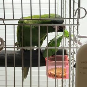 卒業、挿し餌のコミドリコンゴウインコ86日齢
