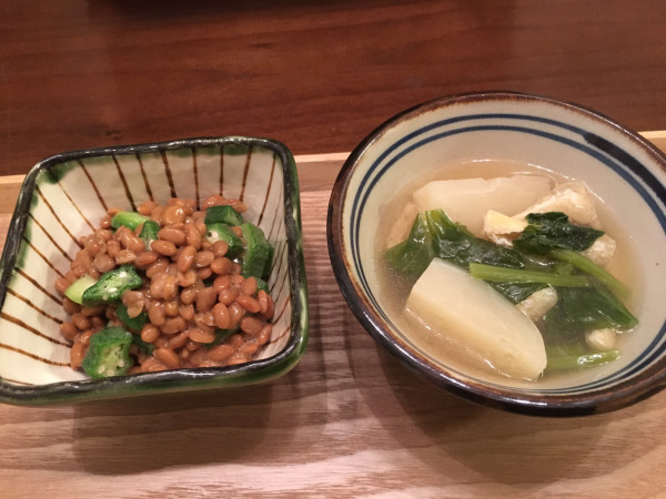 おくら納豆、かぶとお揚げの煮物。この煮物も喜んでました。