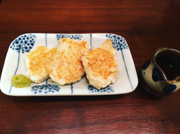 大和芋をすりおろして焼いたの。お出汁を合わせて焼きました。ふんわりというよりむっちり。これも九谷青窯。