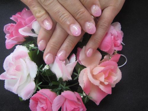 ジェルで長さを出してピンクカラーの
