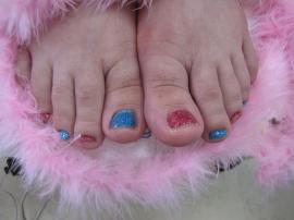フットジェルでピンク&ブルーの
