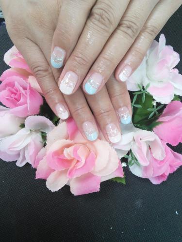 ピンクとブルーのフレンチに