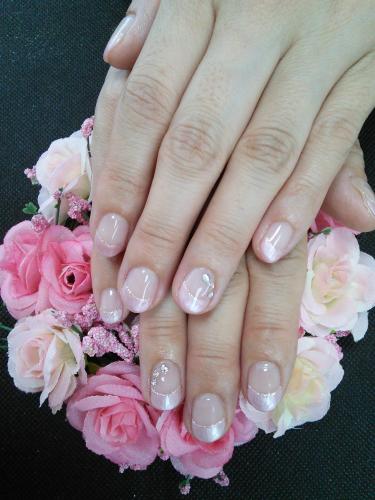 フレンチネイル♪ 初めてご来店頂いたS様☆ パールピンクのフレンチに ラメラインとポイントで 薬指にストーンアートをいたしました(*^^*) ありがとうございました。 また宜しくお願い致します 横須賀ネイルサロンFancy