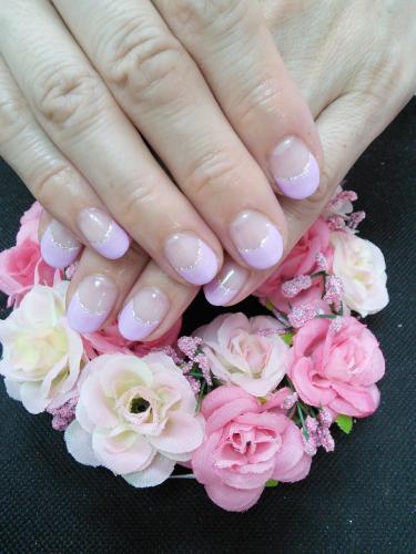 フレンチネイル♪ いつもご来店頂いてるA様☆ ジェルのお付けかえです♪ パープルのフレンチにラメラインで シンプルにいたしました(*^^*) いつもありがとうございます。 また宜しくお願い致します 横須賀ネイルサロンFancy