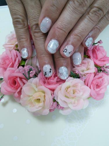 音符ネイル♪ いつもご来店頂いてるH様☆ ジェルのお付けかえです♪ 白の全塗りにチェック柄と音符アートをいたしました(*^^*) いつもありがとうございます。 また宜しくお願い致します 横須賀ネイルサロンFancy
