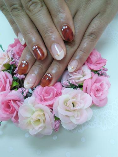ベッコウ柄ネイル♪ いつもご来店頂いてるN様☆ ベージュのフレンチに ベッコウ柄ネイルをしました。 温かく見える今の流行りですね。 ありがとうございます。 また宜しくお願い致します 横須賀ネイルサロンFancy