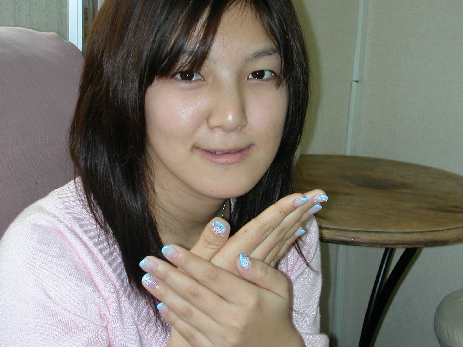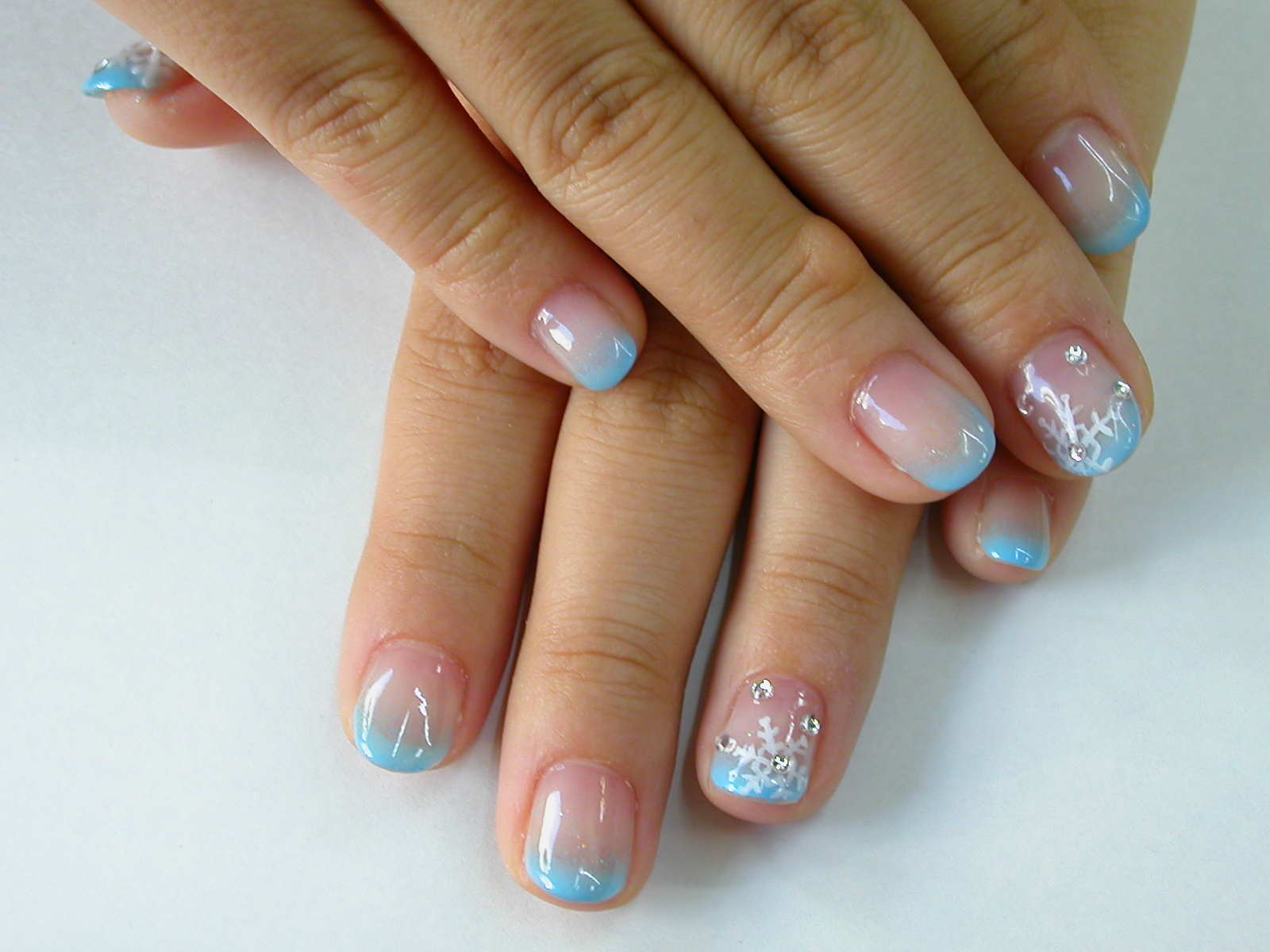 雪の結晶かわいい いつもはピンク系ですが、今回はブルーのグラデーション 爪が小さいので、派手なカラーとポップなデザインがよく似合います 山口さん、ありがとうございました また写真とらせて下さいね(^∀^)