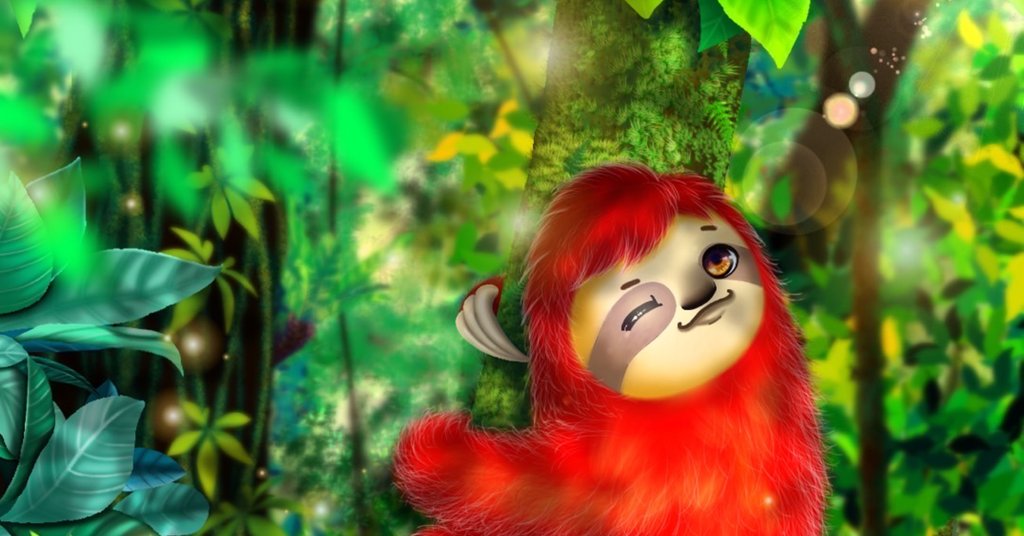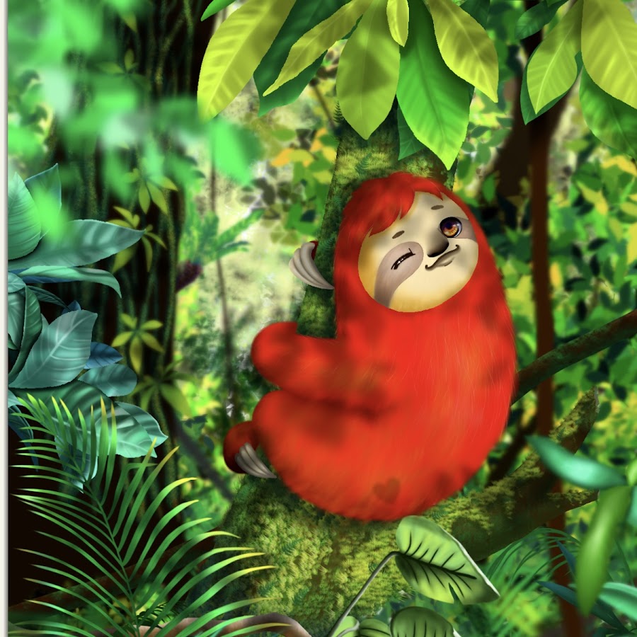 制作中の絵本「スマイロと天(アマ)の木」に出てくる主人公の赤毛のナマケモノです。