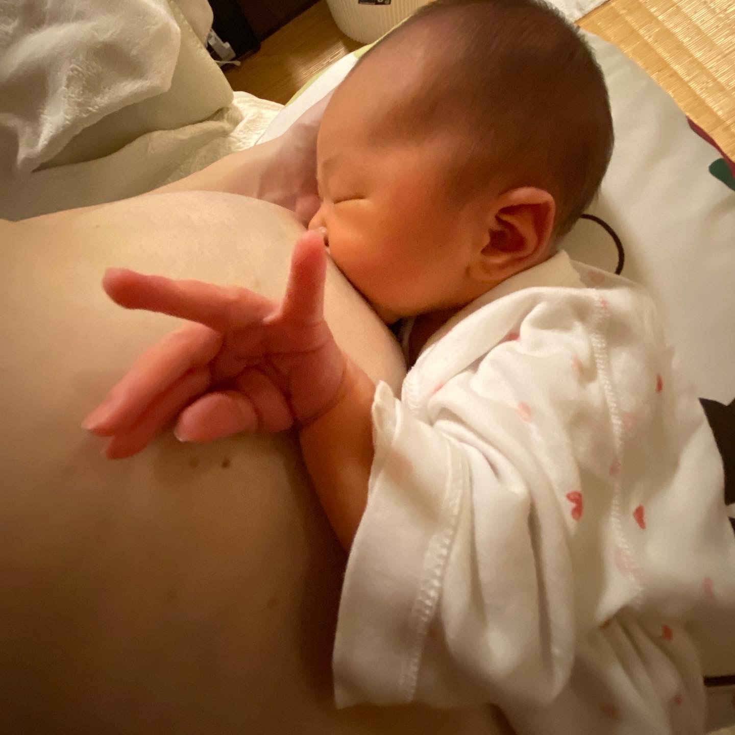 1ヶ月 ちょっと動いては、キャーカワイイ 動かなくても、うわ、カワイイ〜 と、ねこっ可愛がりしていたら、、 あっという間に1ヶ月が過ぎました。 赤ちゃんって、 お化粧しているみたいにお肌が艶やか!笑 涙がアイラインのように光ったりして。 そして、芸術的な手や足。 まじまじと観察してしまいます 宝石みたい まだ新生児の頃も 手は語る なんのサイン?! いろんな表情、見逃したくない 拝みたくなるような瞬間も多々。笑 お風呂上がりに恍惚としたり 隙を見て 一緒にお昼寝 奮闘中のおかーさんです にほんブログ村