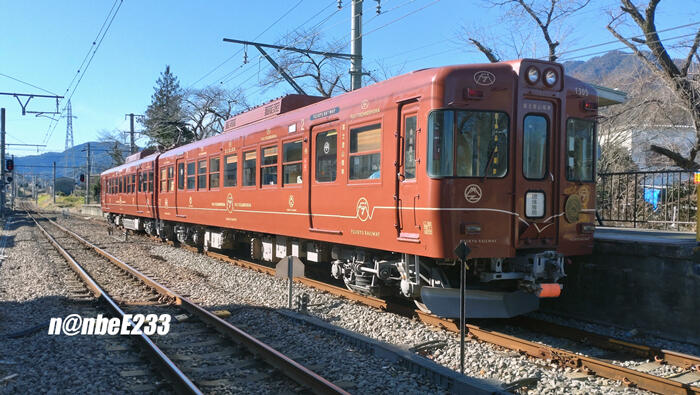 発車の際には、お坊さんと駅員さんがお見送りです。