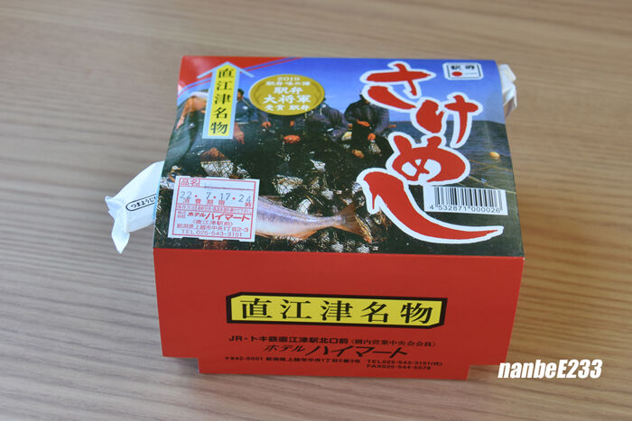 直江津駅で急行3号乗車前に買っておいた「さけめし」の夕食で帰路となりました。