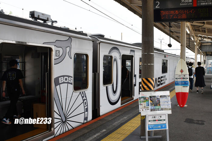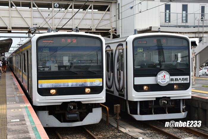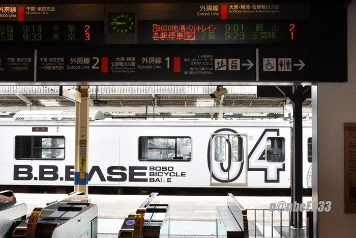 左が乗ってきた233M上総一ノ宮行.右がこれから乗るB.B.BASE...