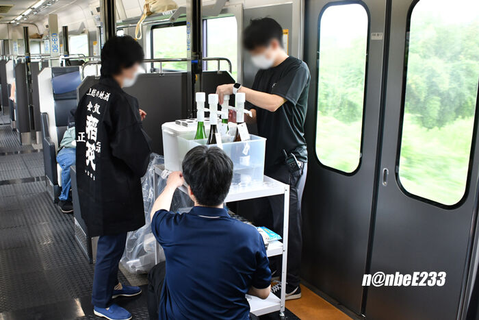 列車が発車してほどなく...千葉の蔵元さんの試飲がスタートです。