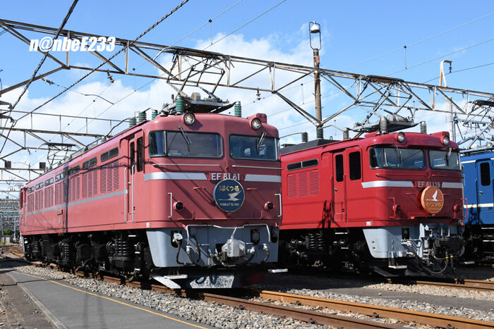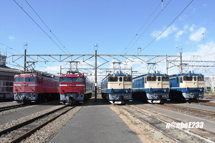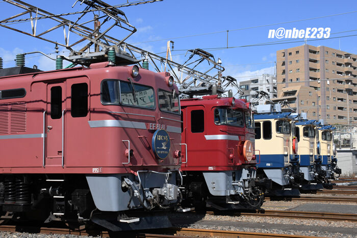 EF81が2両とEF65PFが3両並んでいます。