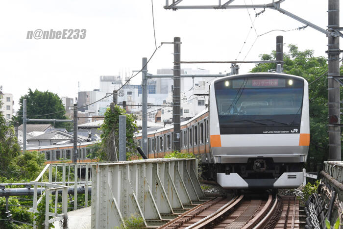 2024.05.26. ホリデー快速おくたま3号青梅行実家運用で立川へ出たついでに、 曇り空だったのと、ちょうどホリデー快速の時間が近かったので、 少し時間を貰って短絡線に。 しかし現着すると太陽が....^^;真逆光になりますが 通過直前に薄雲がかかってくれました💦 721T ホリデー快速おくたま3号青梅行 E233系T31編成 姿が見えた時...表示は「ホリデー快速 おくたま 青梅 ome」 だったのですが、 すぐに「ホリデー快速」の表示に...^^; そして実家運用へ...。 本日の鉄はこれで終了^^;