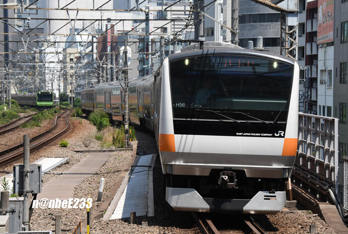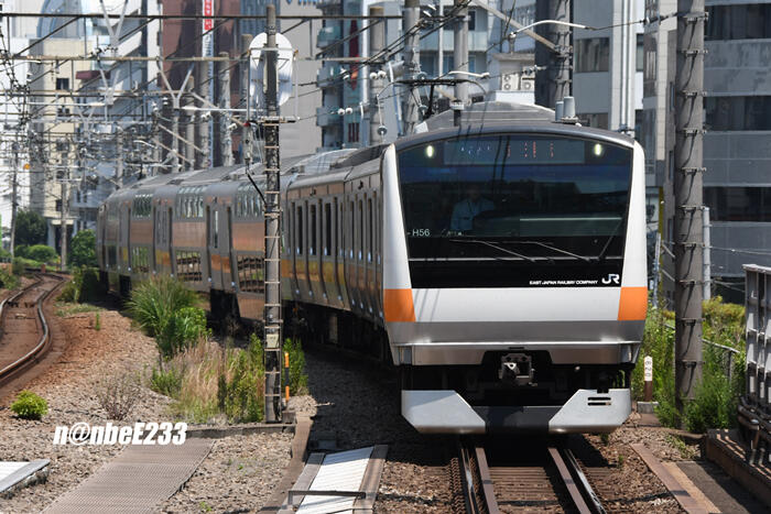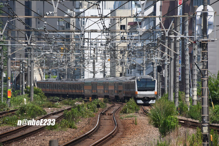 陽炎の中....遠くにE233系の姿が見えてきました。