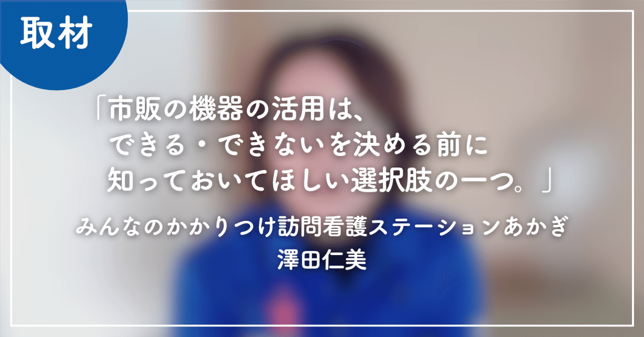 そこから、澤田さんとのやり取りが始まり、Aさんの環境整備の実施や、訪問看護ステーションでの市販機器の活用事例を共有するセミナーの開催へとつながっていきました。