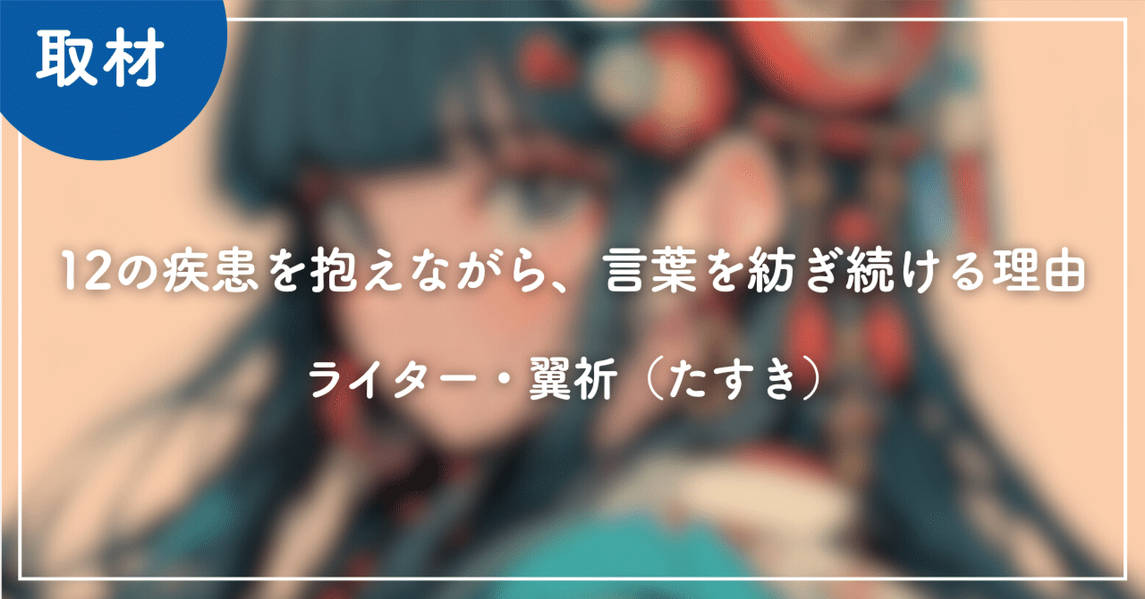 複数の疾患を抱えながら生活する翼祈(たすき)さんに、これまでの経験や、ライターとして働く中での工夫、日常を支えている道具について伺いました。