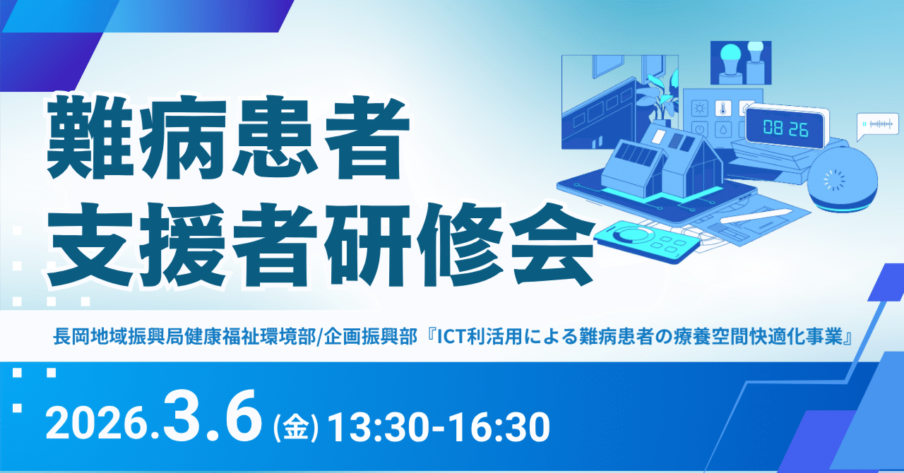 2026年3月6日、長岡地域振興局健康福祉環境部/企画振興部による「ICT利活用による難病患者の療養空間快適化事業」の一環として、難病患者支援者研修会を開催しました。