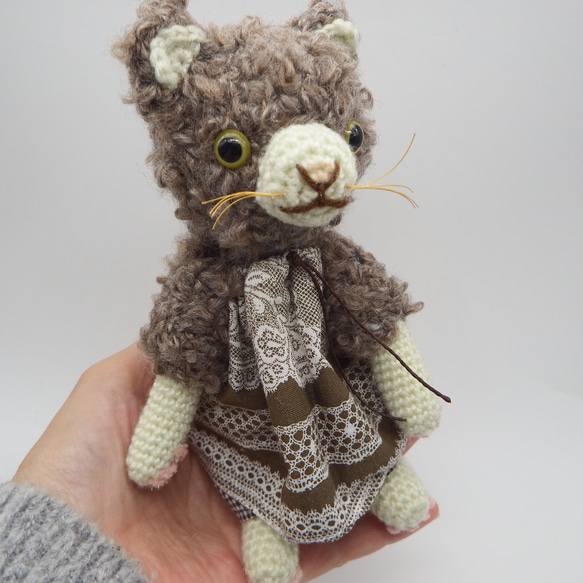 少し小さめです。5年前くらいに作ったベージュの猫に似てるかな?