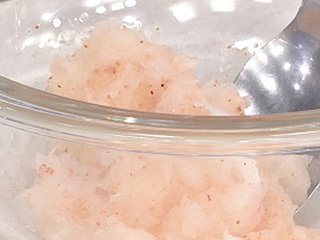 もみじおろしの大根は皮をむいてすりおろし、汁気を軽くきり、一味唐辛子と混ぜる。しょうがはすりおろし、万能ねぎは小口切りにする。