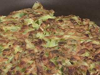 3月 22日 今日のレシピ「納豆とじゃこのお好み焼き」
