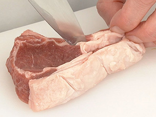 ラムチョップは火の通りをよくするために、側面の脂身2~3か所に切り込みを入れます