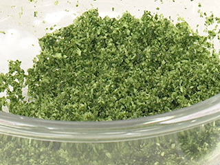 パン粉とパセリをフードプロセッサーやミキサーで全体が緑色になるまで攪拌する。ガーリックパウダー、塩を加えてひとまわしする。ボウルなどに移し、エクストラバージンオリーブ油を加えてよく混ぜる。