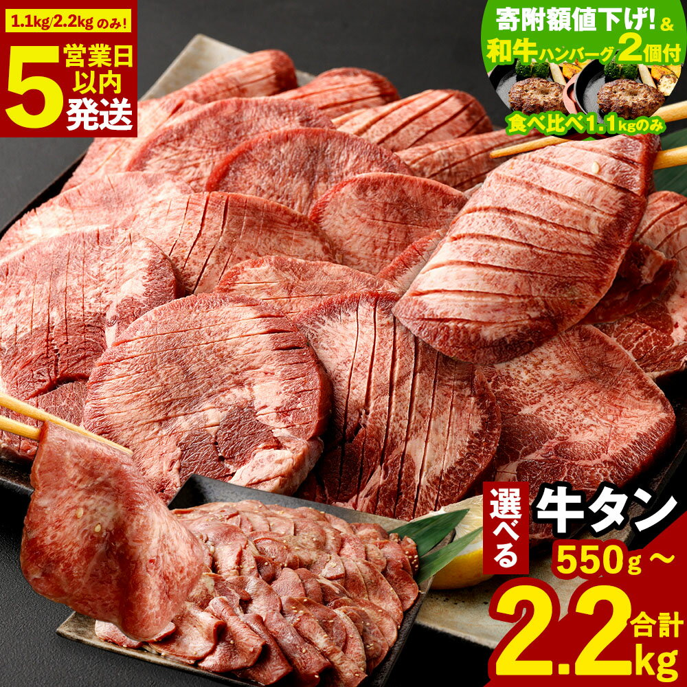 【ふるさと納税】【数量限定 厚切り牛タン&薄切り牛タン 食べ比べ1.1kgに和牛ハンバーグ付】【1.1kg/2.2kgのみ★最短発送!!5営業日以内発送】【選べる!】厚切り牛タン 薄切り牛タン 合計2.2kg/合計1.1kg/550g 1パック550g 特製スパイス付 冷凍 選べる発送月 送料無料楽天市場10,000円~