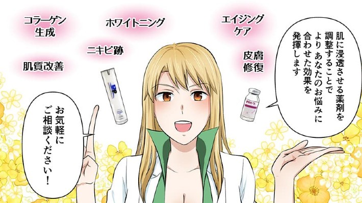 ペン型の機械の先に、極細の針がたくさん付いていて、肌に小さな穴をあけて、