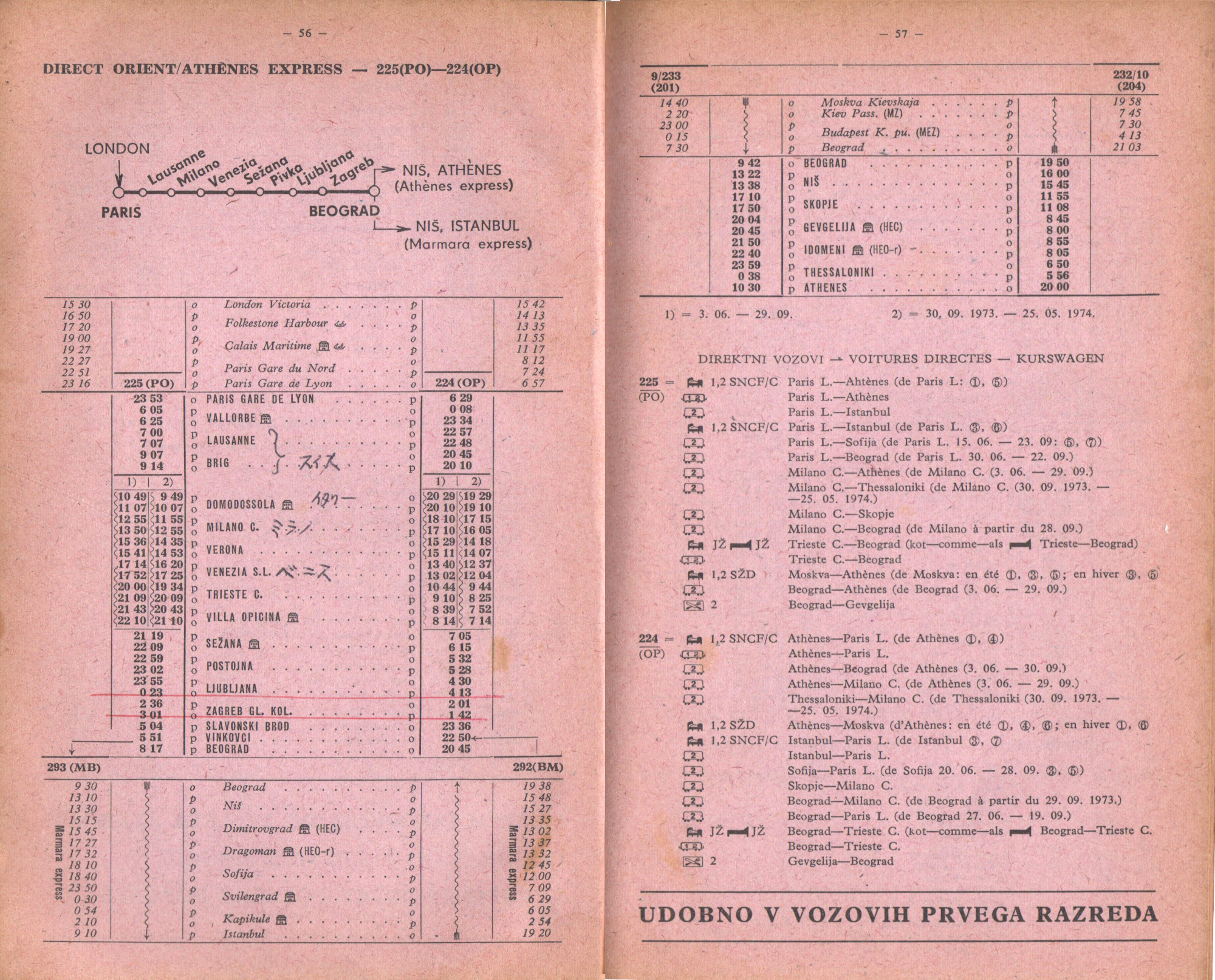 DIRECT ORIENTとして Beogradから名前はATHENE E.(アテネ行き)とMarmara(イスタンプール行き)分離して運行されていた 実際ユーゴスラビア内で数回乗車した