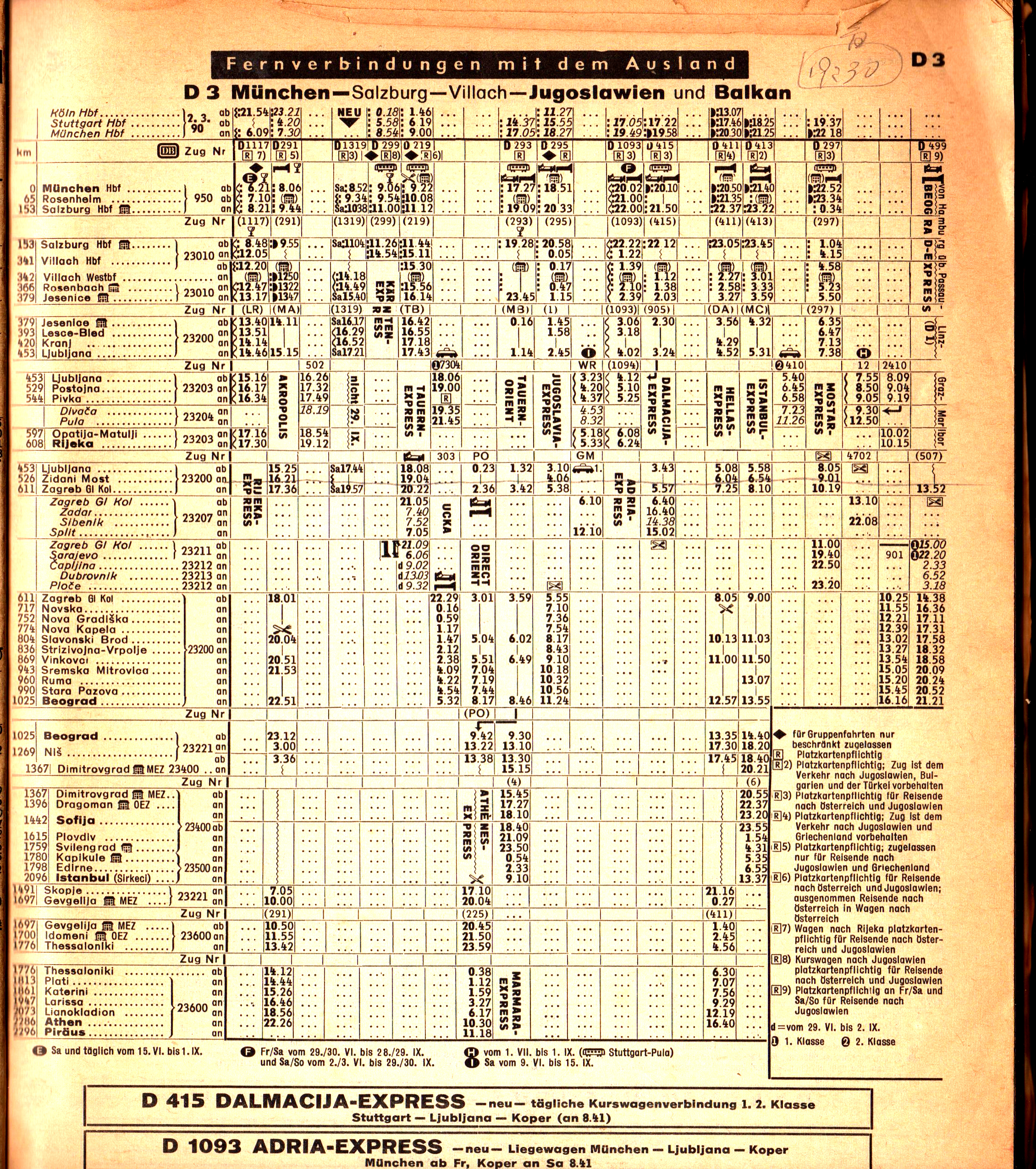 尚1939年に終わったとされる資料は↓ですが最初のユーゴスラビア時刻表とDBではパリから