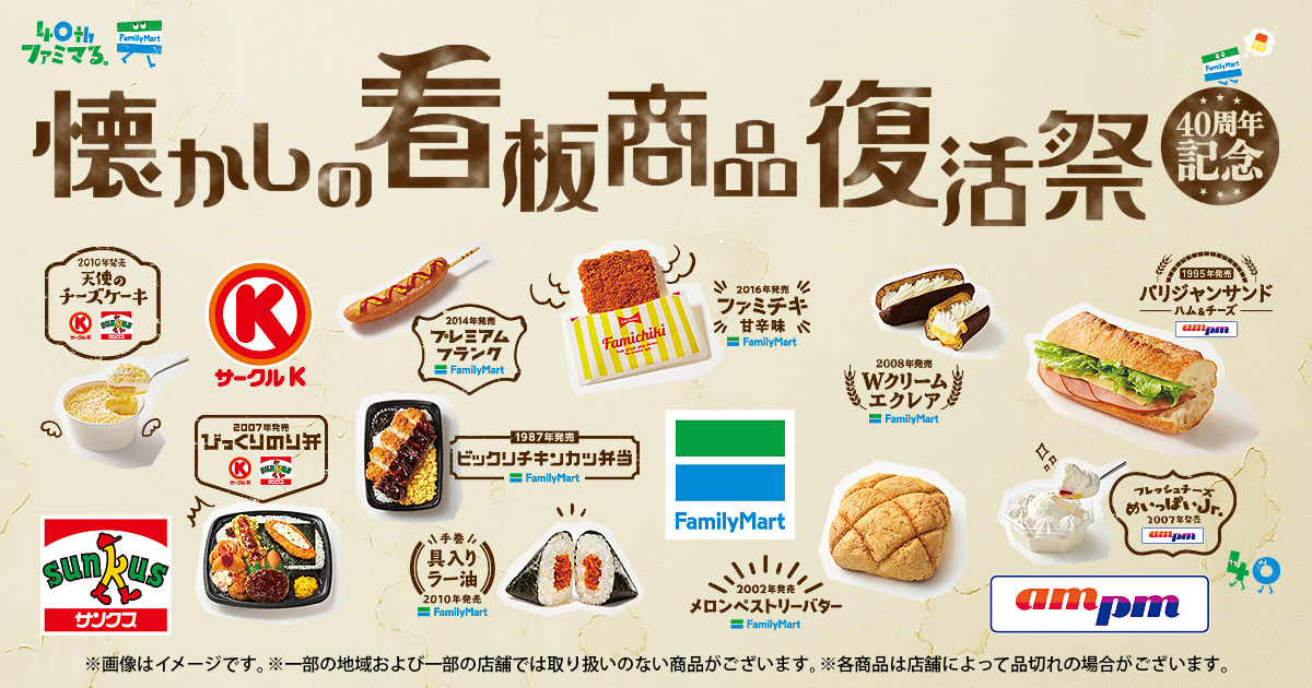 などなど考えていたら、ファミマ40周年の新しい企画「懐かしの看板商品復活祭」のCMが来たよ