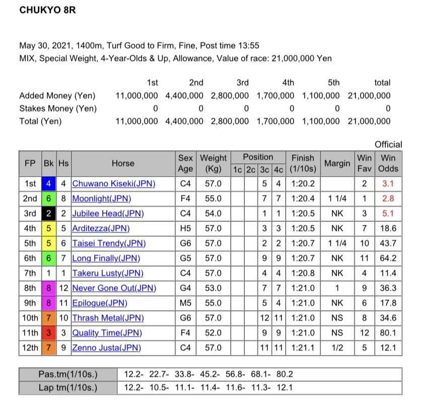 5/30/2021 Chukyo Race 8 Special Weight 1400m (Turf)