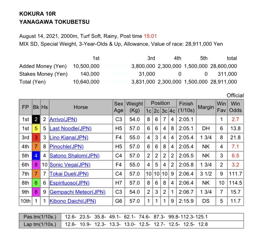 7/3/2021 Kokura Race 10 Yanagawa Tokubetsu 2000m (Turf)