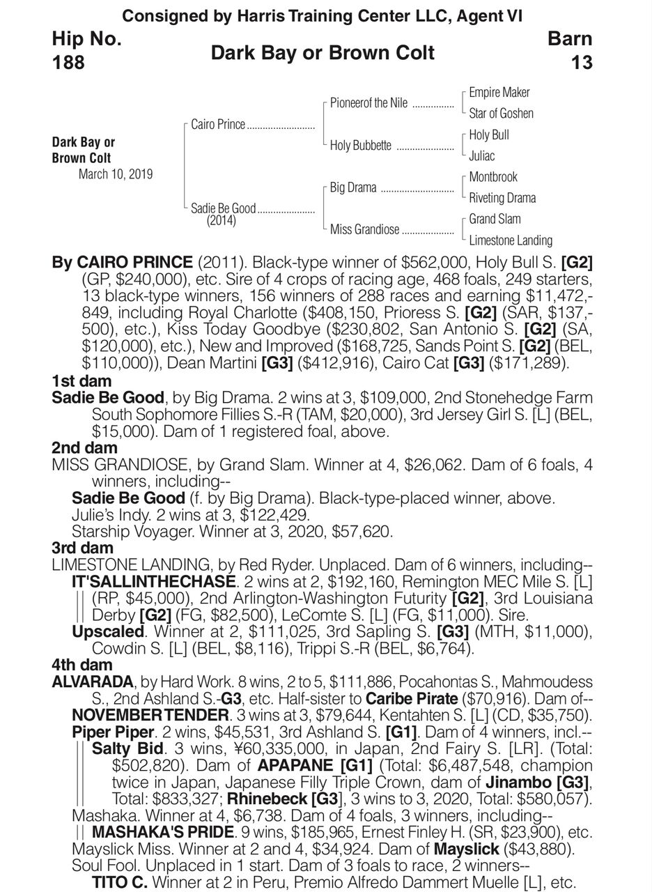 Cairo Prince (KY) - Sadie Be Good (FL), by Big Drama (FL)