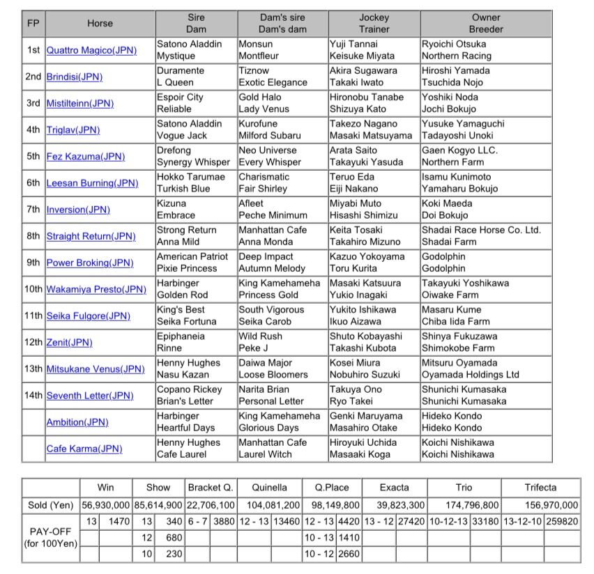 Satono Aladdin (JPN) - Mystique (GER), by Monsun (GER)