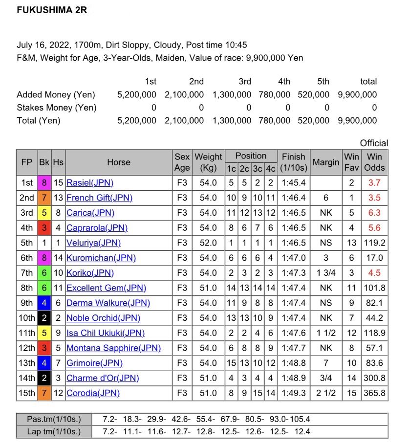 07/16/2022 Fukushima Race 2 Maiden 1700m (Dirt)