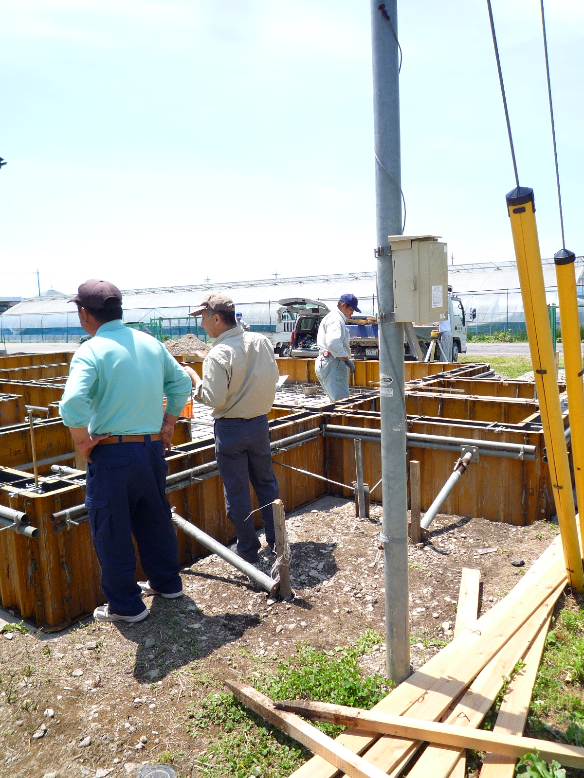 2,3日前のカラっと晴れた日に現場に立ち寄った際、監督や業者さん達が配筋の最終チェックに入ってました。