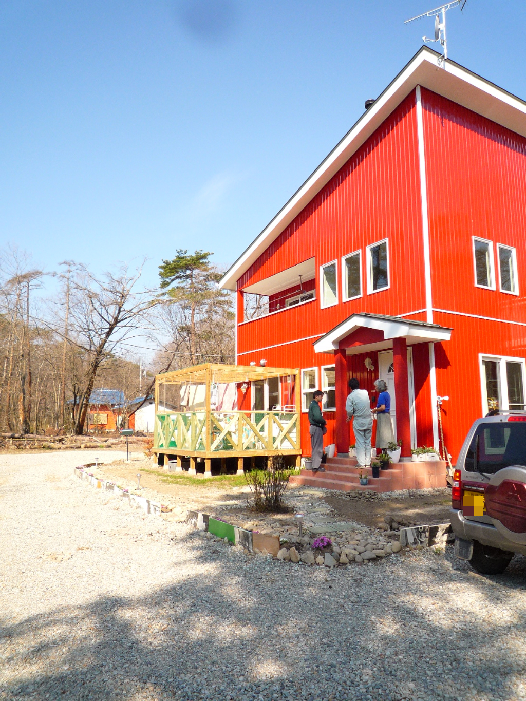 場所は千本松牧場のすぐ近く、林の中に建つ赤いガルバリウムの外壁のおうちです。