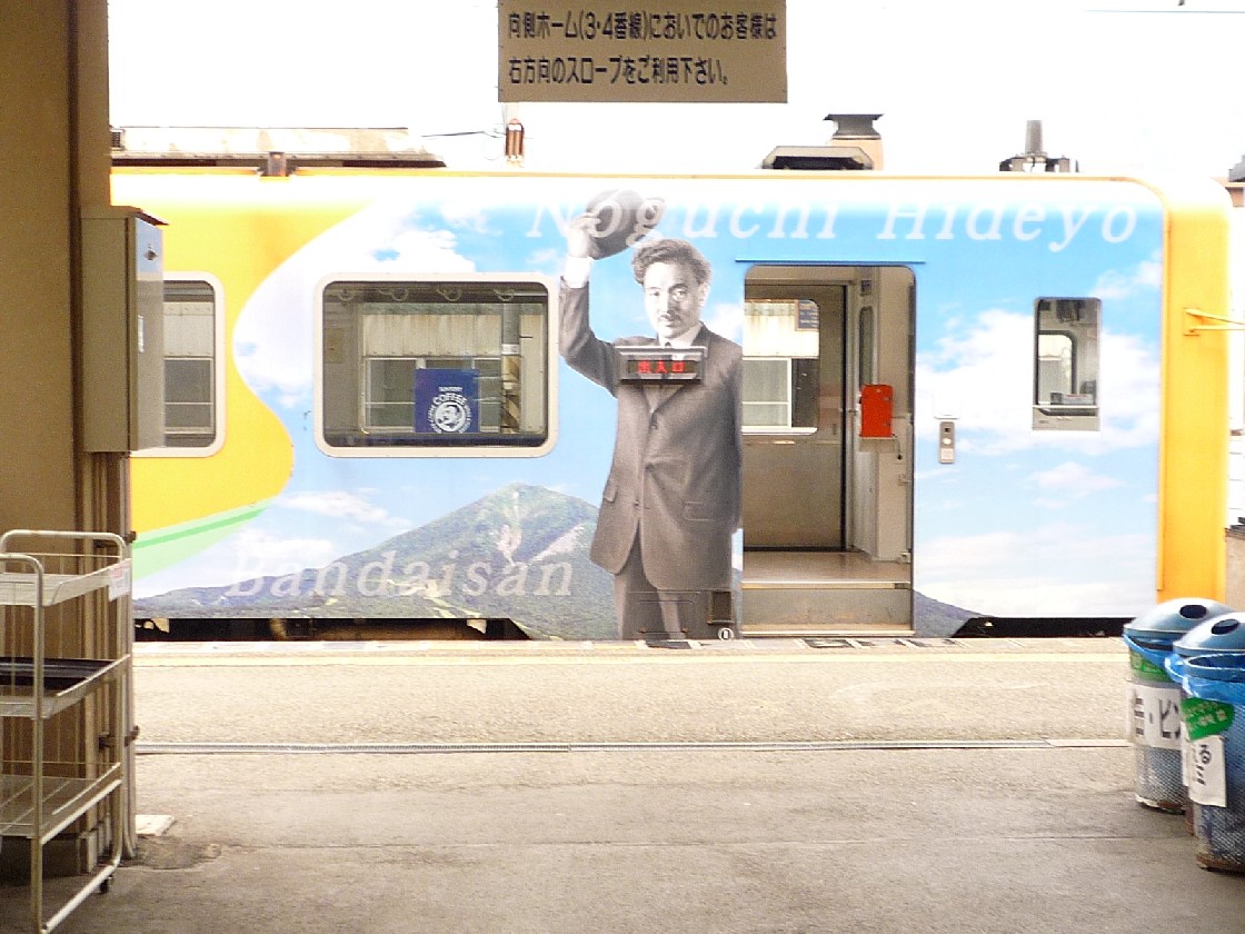 会津ゆかりの偉人「野口英世博士」の千円札を記念した車輌だそうです。
