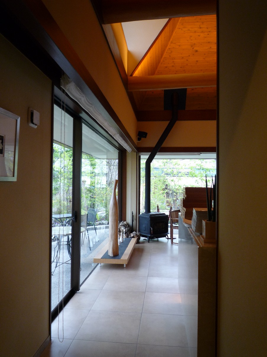 薪ストーブ側の天井は吹き抜けていて、とっても気持ちがいいんです~。
