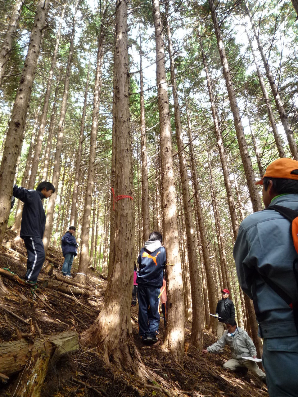 木々の胴回りを測ったり、植生を調べたり、傾斜を調べたり、木の高さを調べたり、、と(詳しい調査方法はこちらを!矢作川水系森林ボランティア協議会)