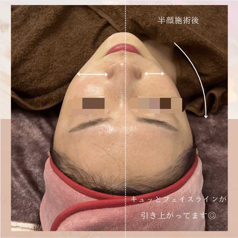 右半顔だけ施術した後のお写真です。