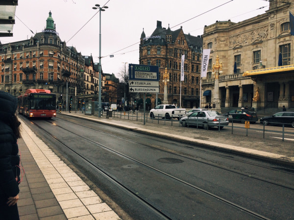 圖:等公交。原本要去的故居沒有開門,臨時決定去skansen,所以這班售票員當天總共見了三次。