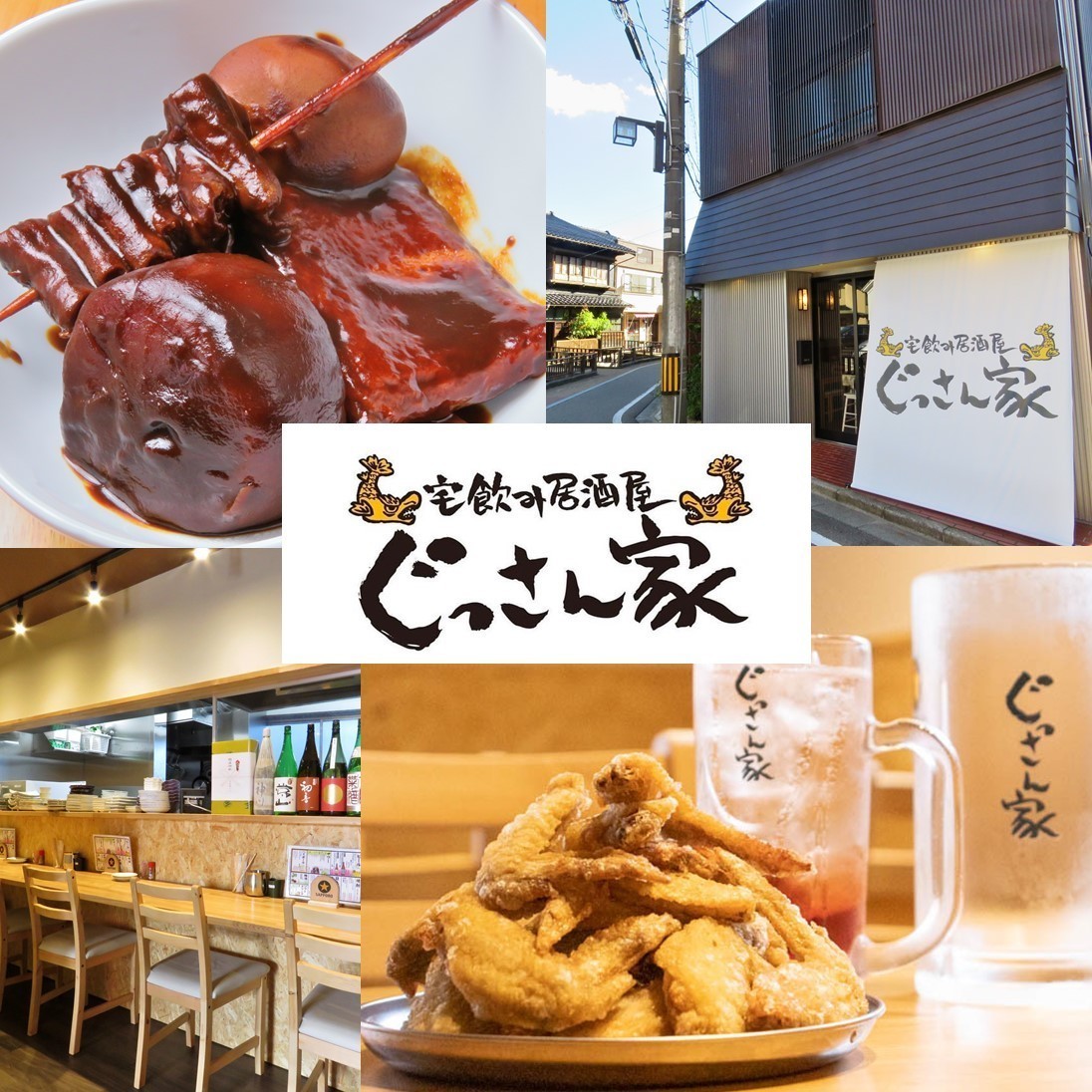 地元名古屋を愛するぐっさんが、まるで友人を自宅にお招きする時のように皆様をおもてなし。皆様の“第二の家”となれるよう「おかえりなさい!」と元気なご挨拶でお出迎えします。 居心地の良いアットホームな空間で、気のおけない仲間とお食事、飲み会を楽しんでくださいね。 名古屋人のソウルフードでありぐっさん自慢のメニューでもある手羽先や味噌カツ、味噌おでん、味噌煮込みうどん、スガキヤ風ラーメン等、本格的な名古屋めしをご堪能ください。 【宅飲み居酒屋ぐっさん家】は、名古屋めしだけでなく居酒屋メニューも充実。 特に焼き鳥はお店でカット・串打ちをし、炭火で焼く本格派。ビールがどんどん進む美味しさです。 コースや飲み放題メニューもあり、2階は貸切にも対応できますので各種宴会におすすめですよ。 また、名古屋発名物ともいえる喫茶店でのモーニングサービスを居酒屋バージョンにした、19時までのご来店で手羽先or焼き鳥3種orおでん3種がついてくるサービスを実施中。名古屋に行ったことのある方もない方も、名古屋の文化を感じてください。 お一人様大歓迎、団体様大歓迎、ご家族連れも大歓迎。