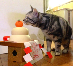 鏡餅の隣に来たので、携帯で撮りました。