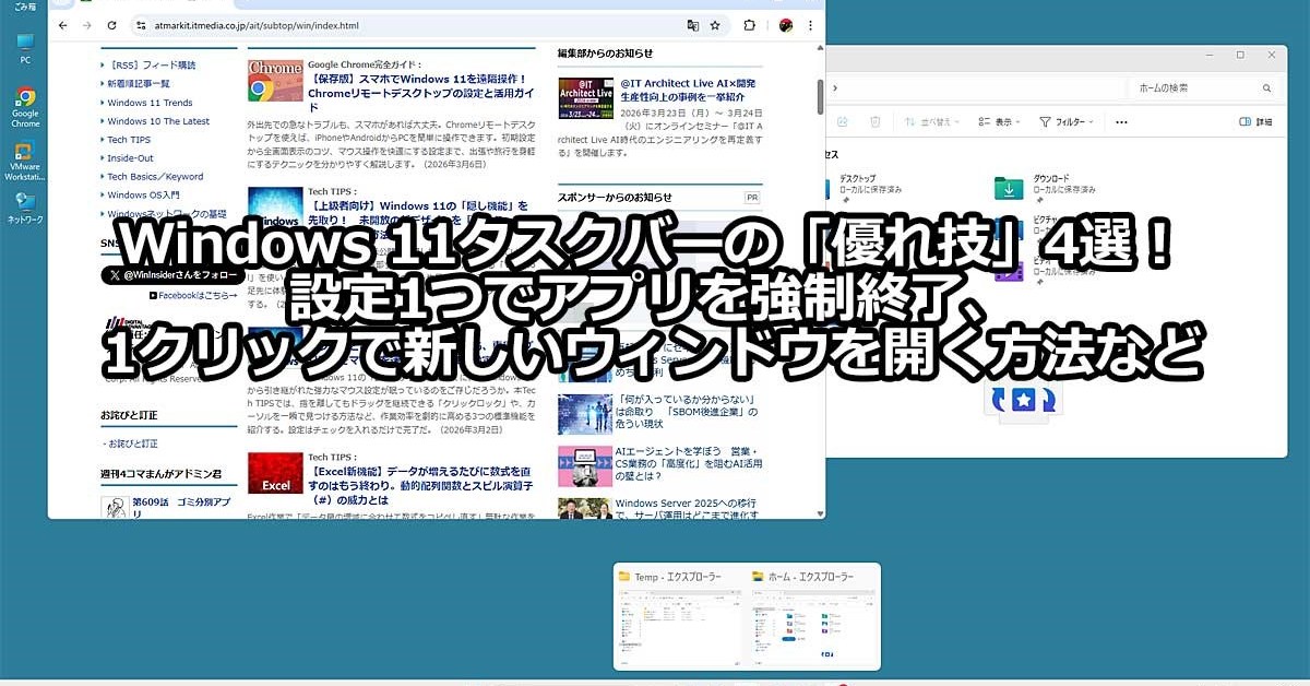 タスクマネージャーを開かずに右クリックで「タスクの終了」ができるのは便利