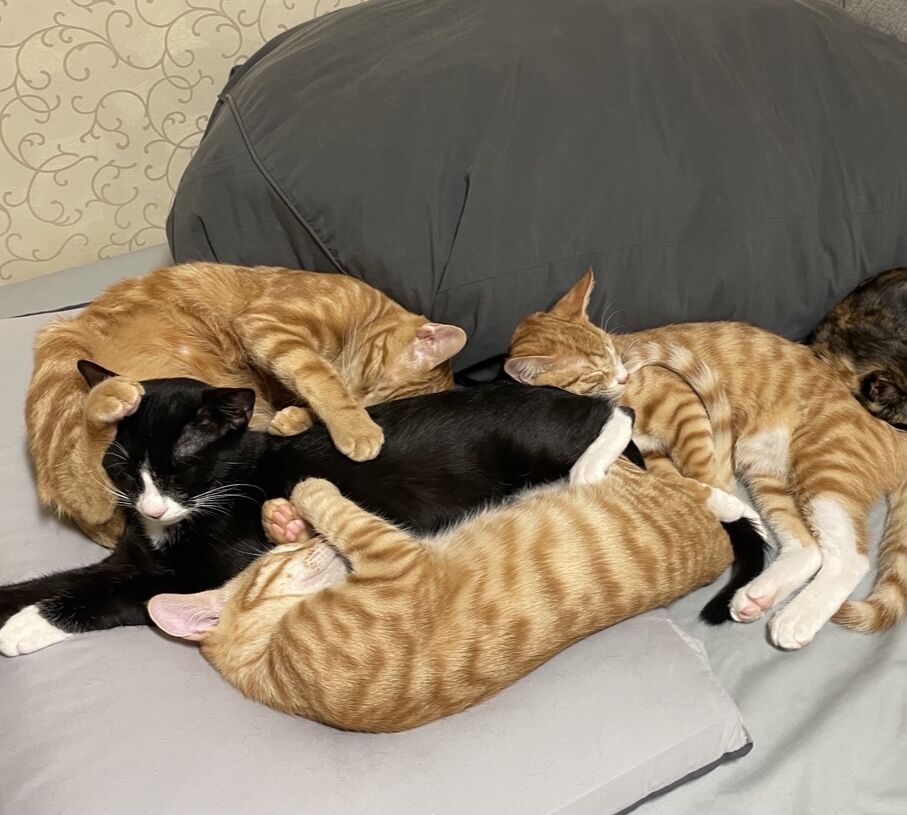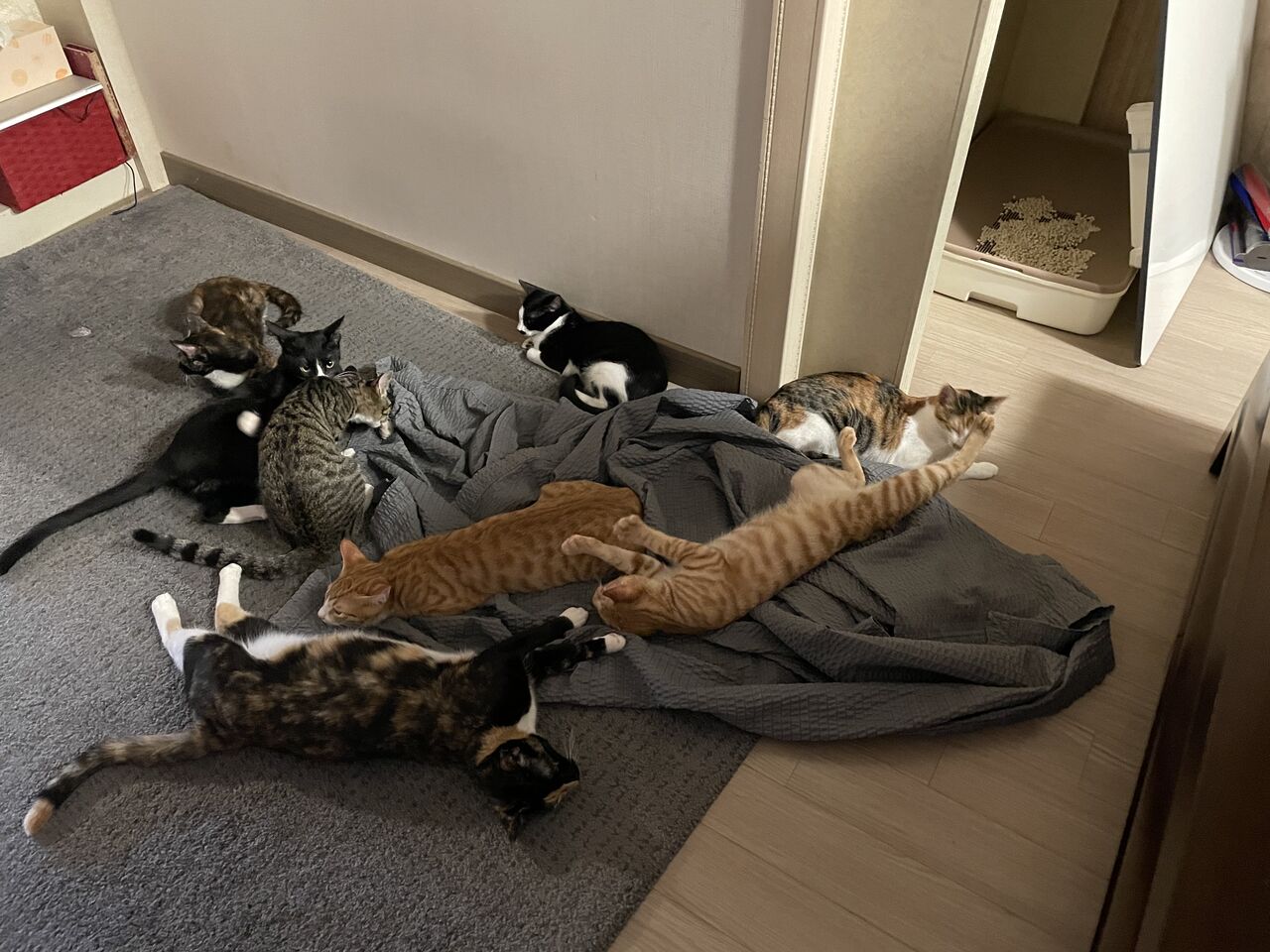 ソーシャルディスタンス我が家に9匹もいるにゃんこたちですが・・・ こんなご時世ですからね きちんとソーシャルディスタンス そう社会的距離を保ち・・・ 常に安全を心掛け・・・ ん? あらら・・・💦 我が家は仲良しニャンズなのでどうかお許しを (はるお兄ちゃん 大好き💛)