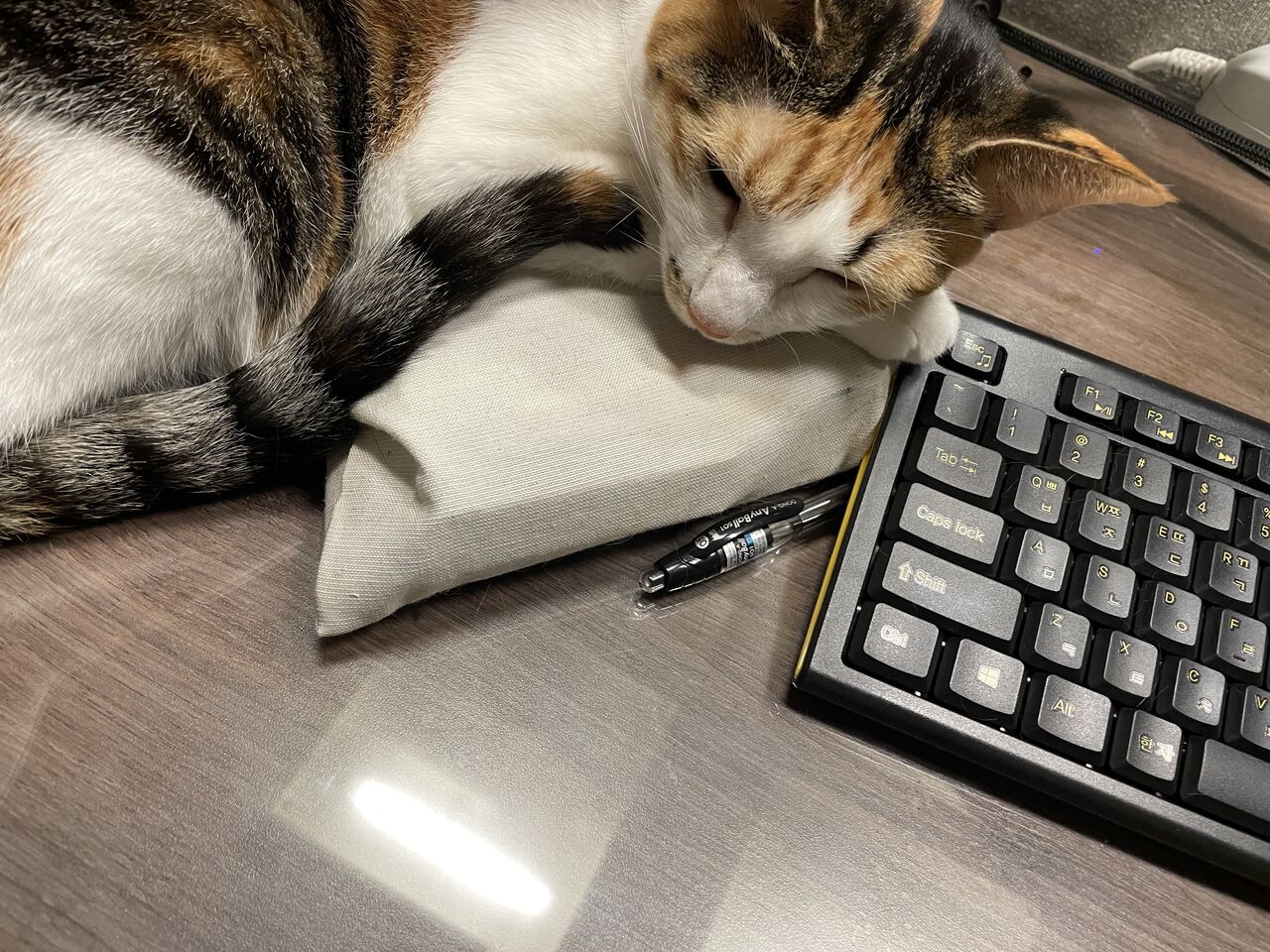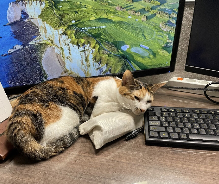枕に調度よい お仕事 お仕事って 遊んでくれないから・・・ ペンケース隠しちゃうからね お仕事させないんだから!! ・・・って・・・ なんかこれ 枕に調度よくて・・・ 眠く・・・ 遊ばなくていいです寝ます この後 ぐっすり眠りについた みゆちゃんでした